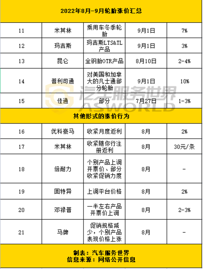 與前幾輪類似,機油一旦集中漲,輪胎大規(guī)模漲價也來了。