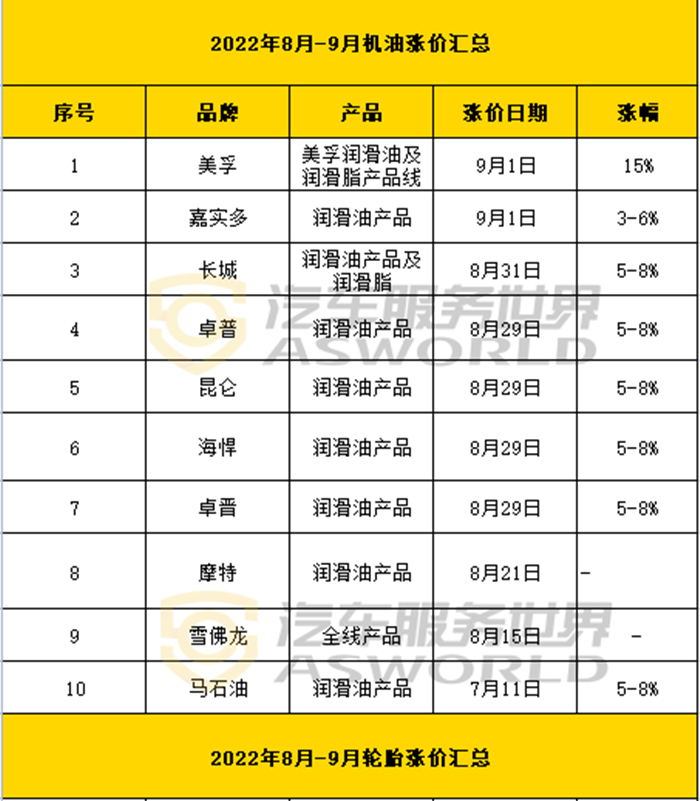 難道說,繼今年1-2月、3-4月、6月-7月之后,行業(yè)的第4輪大規(guī)模機油輪胎漲價潮又要來了?
